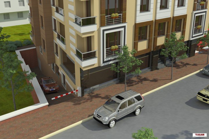 Arsa Alanı 600 m² İnşaat Alanı (yaşam alanı) 2.400 m² 24 Daire 2 Dükkan Tek Blok